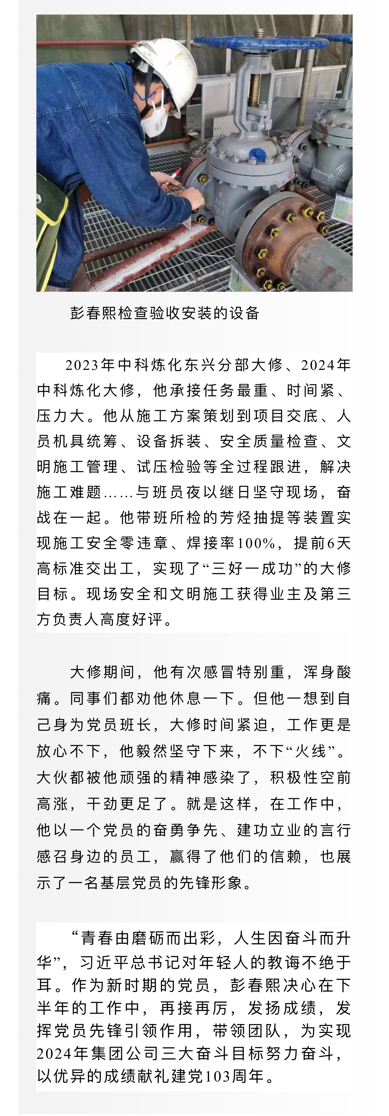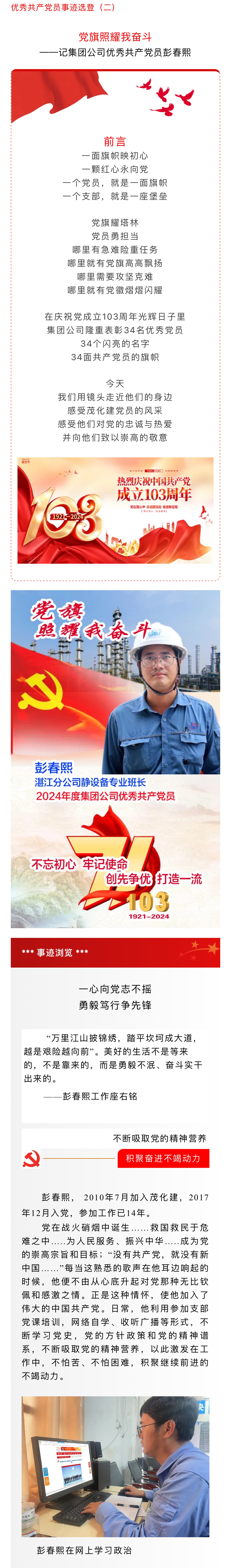 黨旗照耀我奮斗——記集團公司優(yōu)秀共產黨員彭春熙
