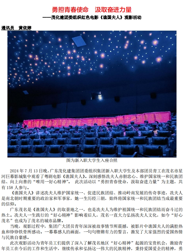 勇?lián)啻菏姑?汲取奮進(jìn)力量 ——茂化建團委組織紅色電影《譙國夫人》觀影活動