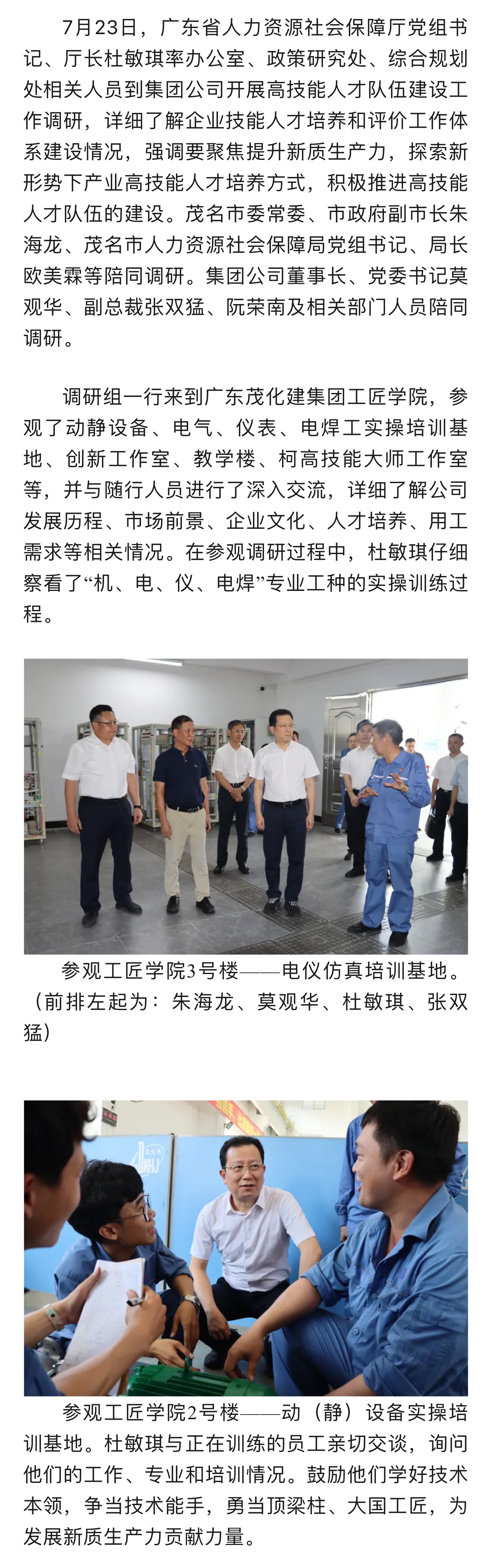 廣東省人社廳到集團公司調(diào)研高技能人才隊伍建設(shè)工作