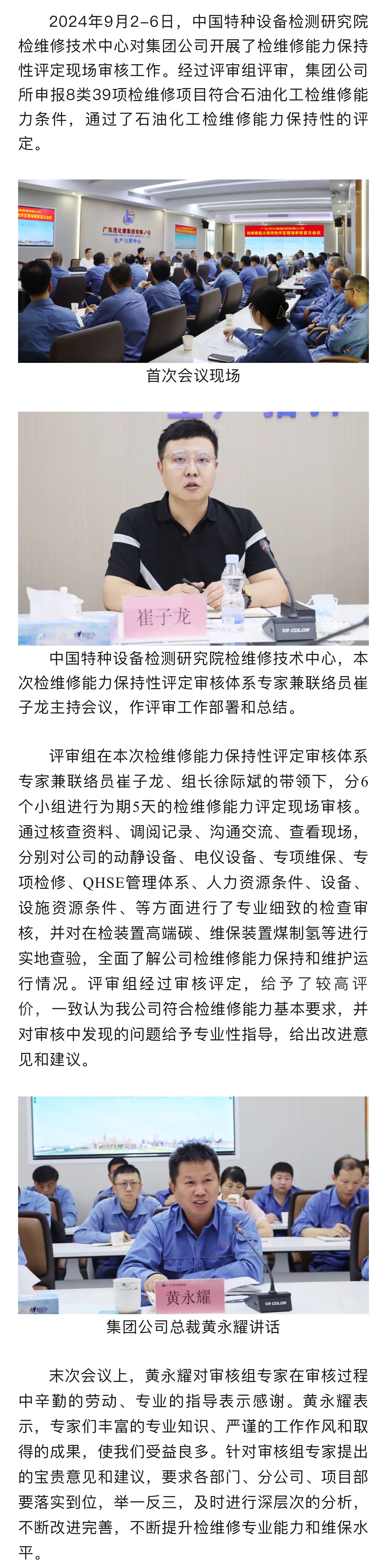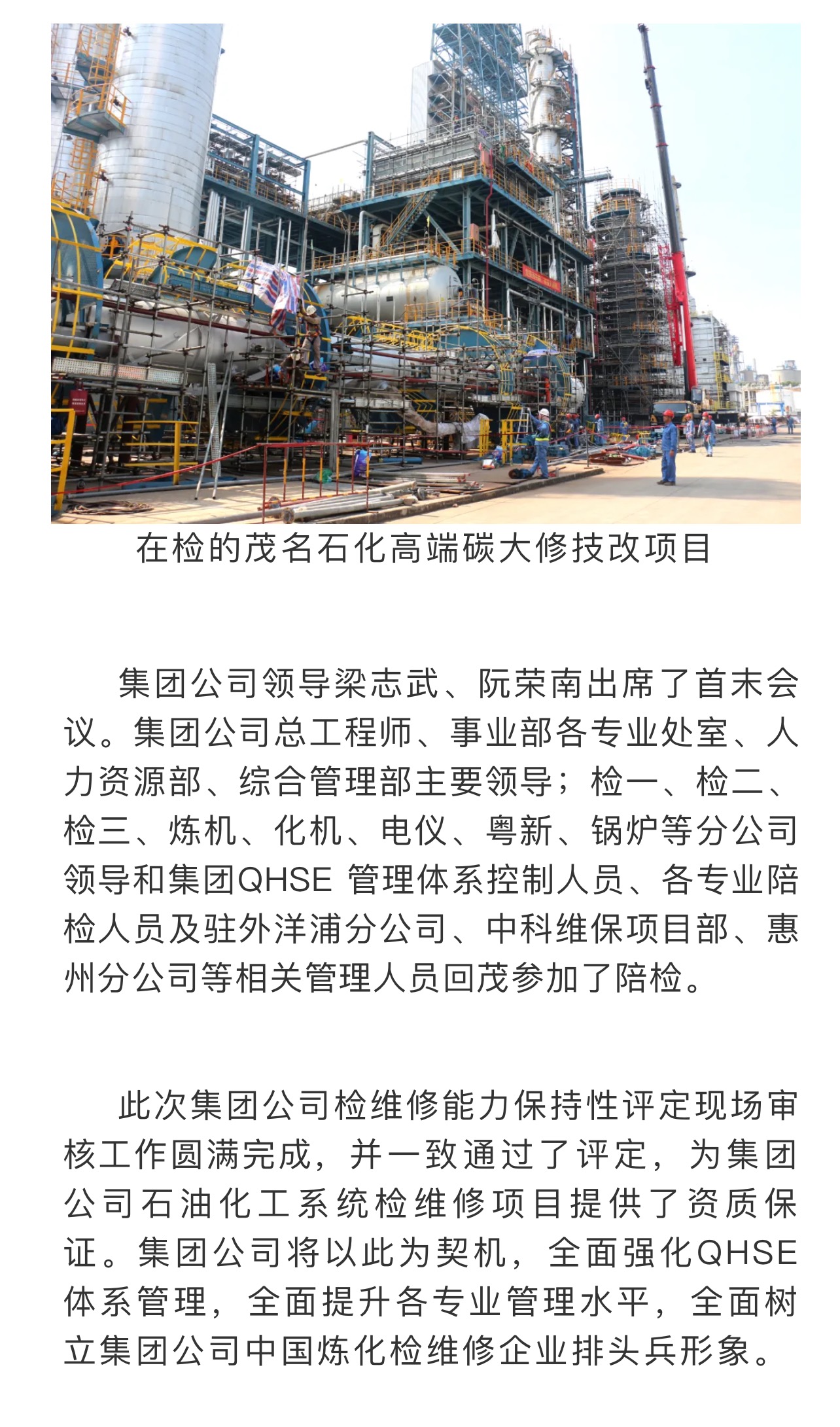 集團(tuán)公司檢維修能力保持性評定現(xiàn)場審核工作圓滿完成