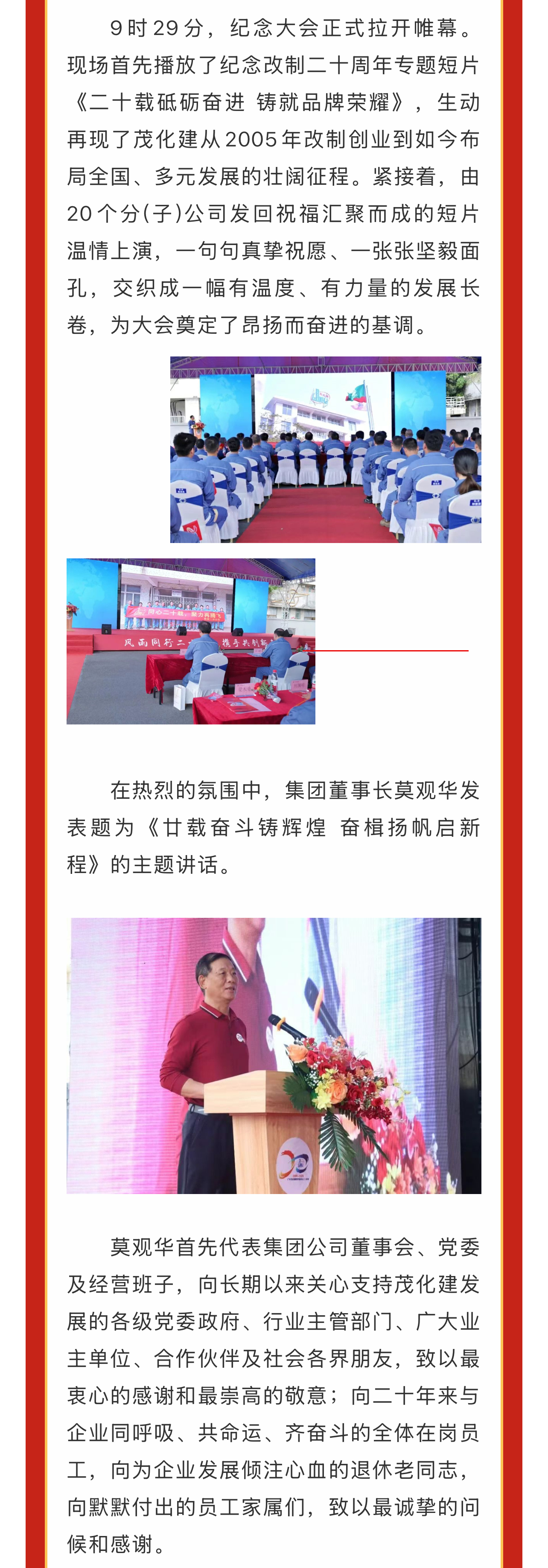 風雨同行二十載 攜手共創(chuàng)新未來 | 廣東茂化建集團改制二十周年紀念大會圓滿舉行