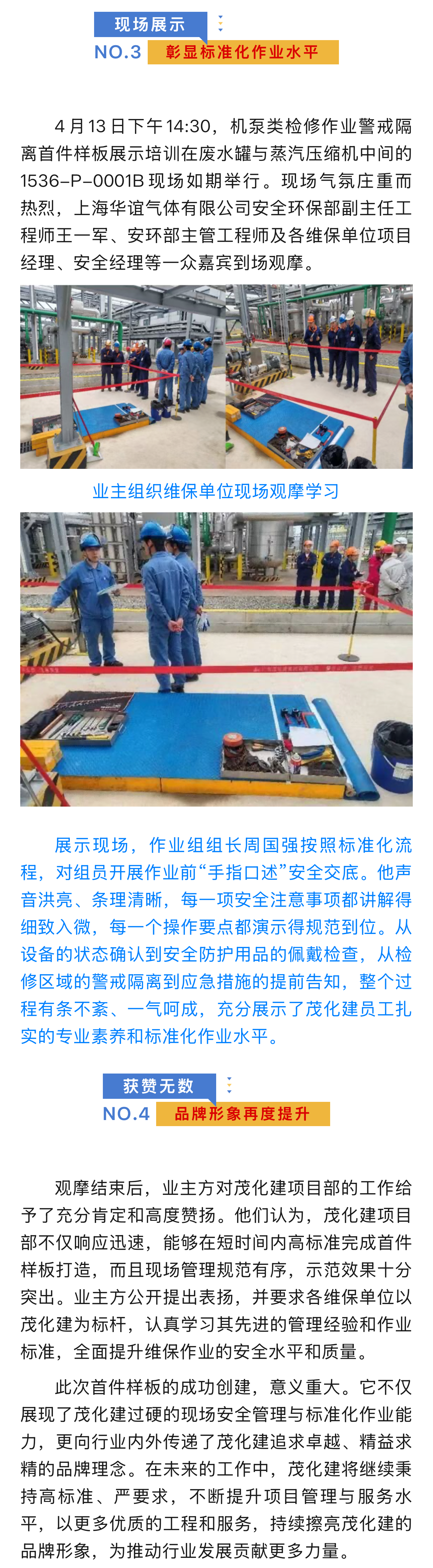 打造維保作業(yè)首件樣板 樹立茂化建品牌形象