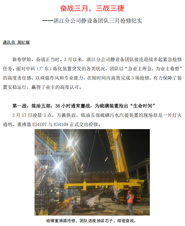湛江分公司靜設(shè)備團(tuán)隊(duì)三月?lián)屝藜o(jì)實(shí)