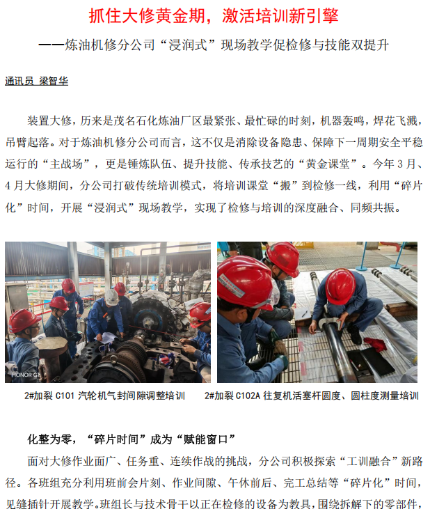 煉油機(jī)修分公司“浸潤式”現(xiàn)場教學(xué)促檢修與技能雙提升
